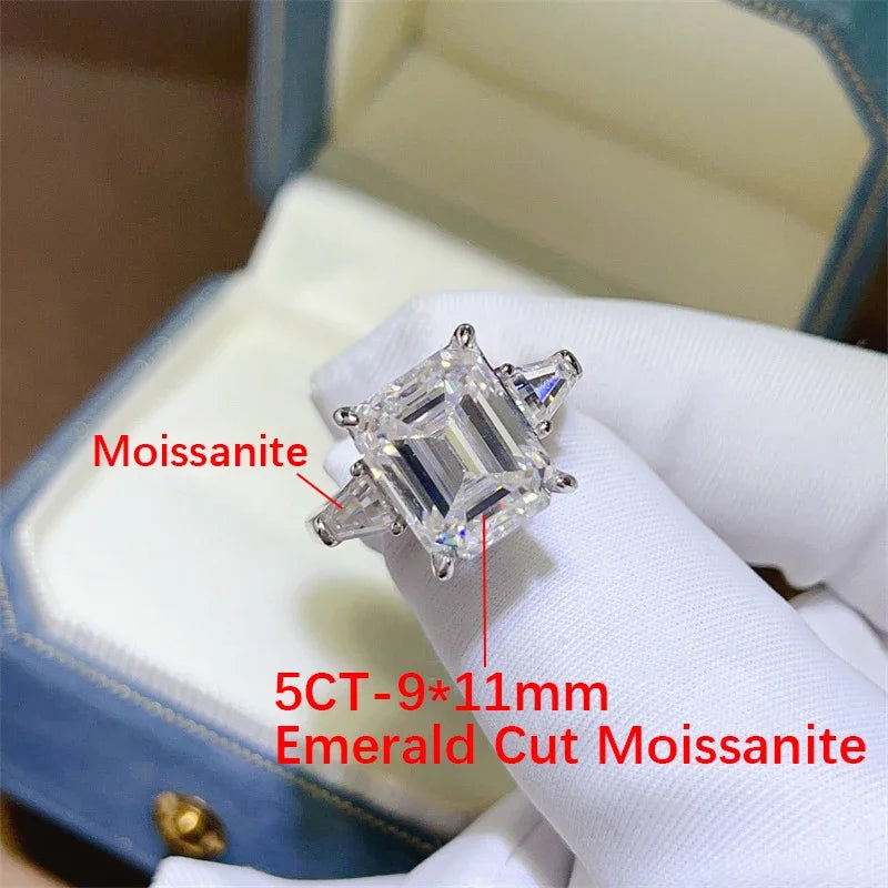BXINY 5/10CT Emerald Cut All Moissanite Rings S925 Silver Baguette 3-Stone Diamond Women Men GRA Certified Wedding Bands Jewelry